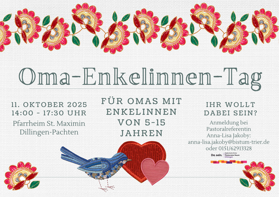Hier finden Sie eine Übersicht über Veranstaltungen, die zurzeit im Pastoralen Raum Dillingen stattfinden. Weitere Veranstaltungen und Informationen finden Sie auch unter Pastoraler Raum Dillingen: Pastoraler Raum Dillingen (pr-dillingen.de)