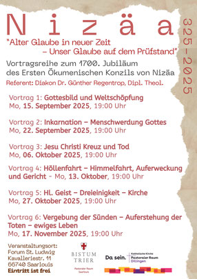 Neue Vortragsreihe: „1700 Jahre Glaubensbekenntnis von Nicäa – Alter Glaube in neuer Zeit – Unser Glaube auf dem Prüfstand“ mit Diakon Dr. Günther Regentrop Dipl. Theologe